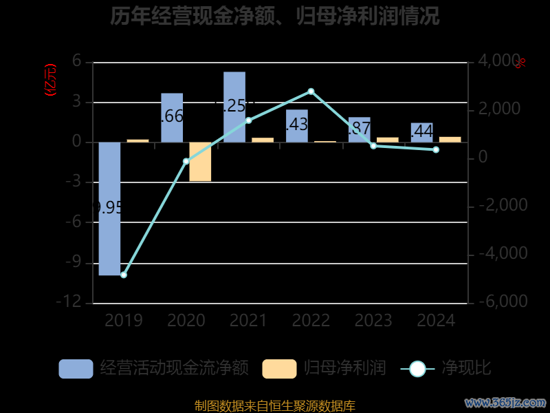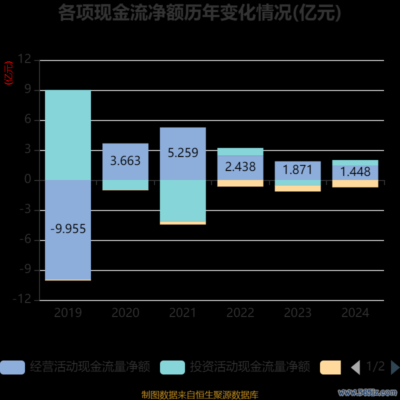 截至2024年,公司经营活动现金流净额为1.45亿元,同比下降22.63%;筹资活动现金流净额-7315.51万元,同比减少960.64万元;投资活动现金流净额5496.98万元,上年同期为-5140.44万元。