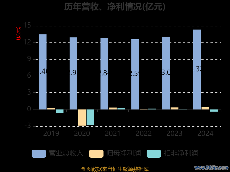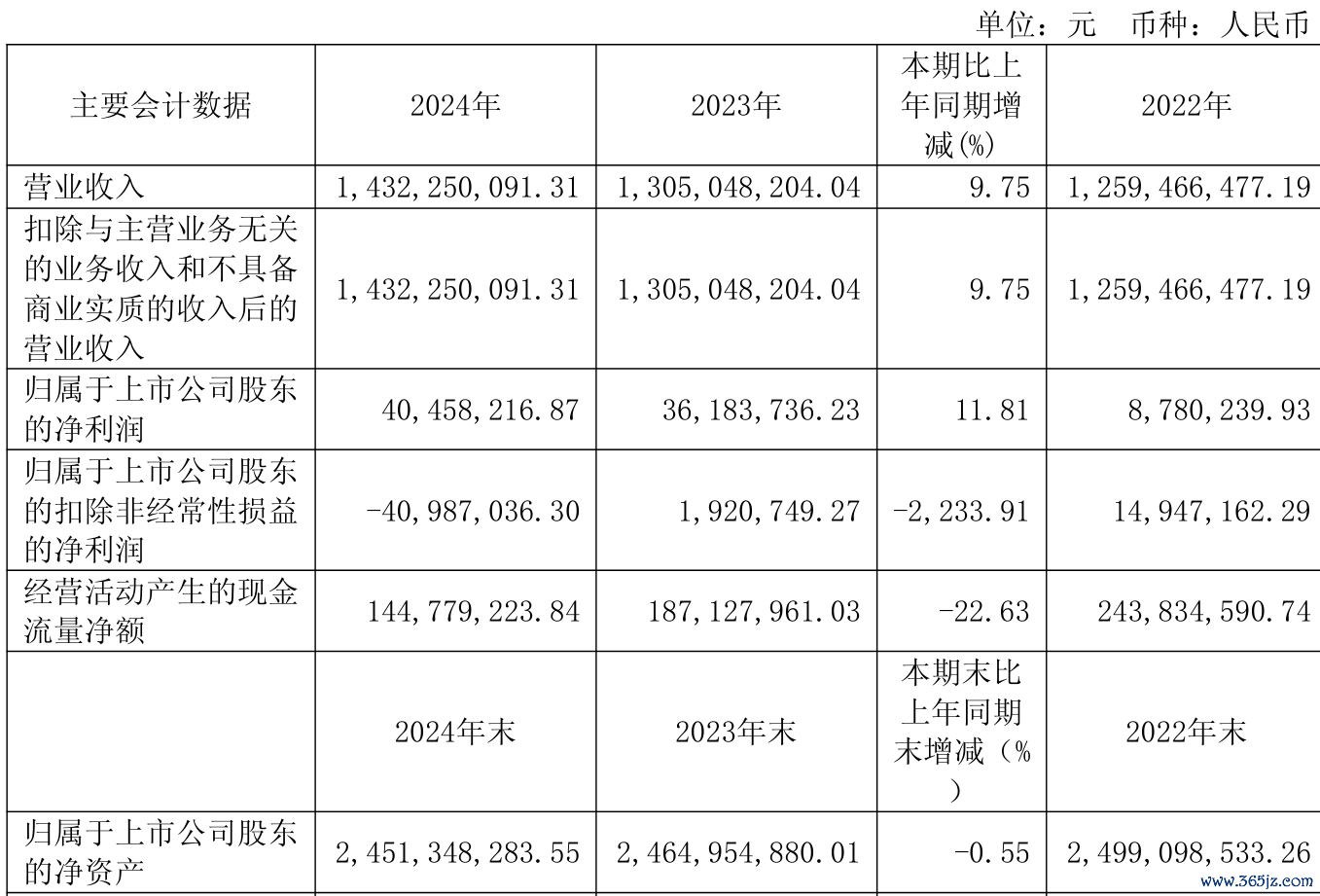 中证智能财讯新华传媒(600825)4月25日披露2024年年度报告。2024年,公司实现营业总收入14.32亿元,同比增长9.75%;归母净利润4045.82万元,同比增长11.81%;扣非净利润亏损4098.7万元,上年同期盈利192.07万元;经营活动产生的现金流量净额为1.45亿元,同比下降22.63%;报告期内,新华传媒基本每股收益为0.04元,加权平均净资产收益率为1.65%。公司2024年度分配预案为:拟向全体股东每10股派现0.12元(含税)。